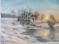 • Акварель "Закат зимой"